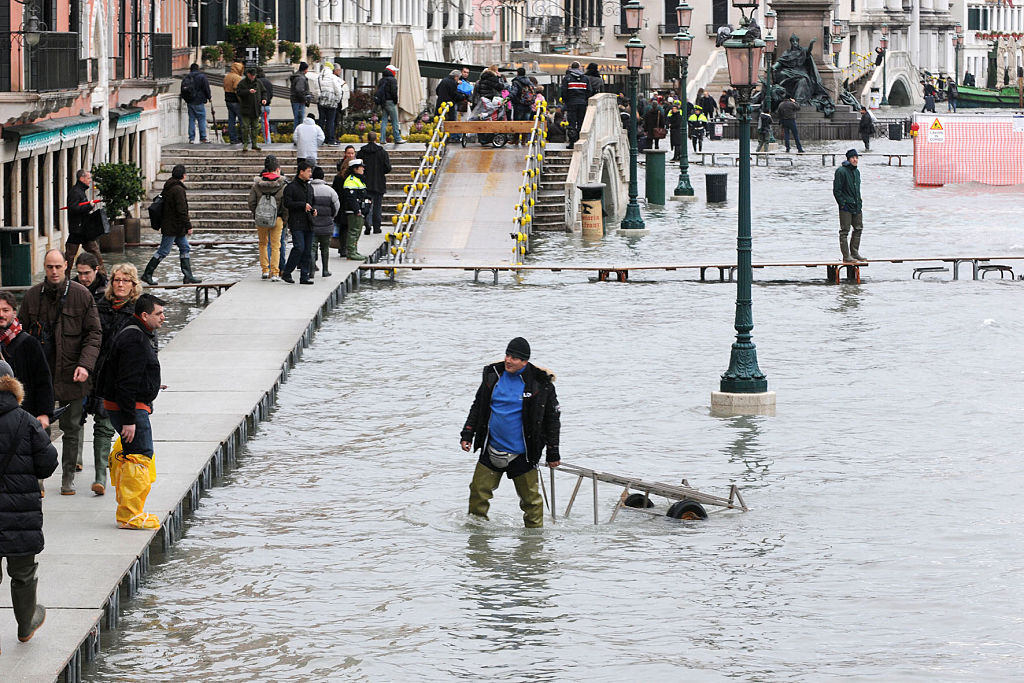 تواجه مدينة البندقية الإيطالية خطر الغرق الكامل خلال الثلاثة قرون القادمة، بسبب ارتفاع مستوى سطح البحر الناتج عن تغير المناخ، إضافة إلى أن الأرض التي