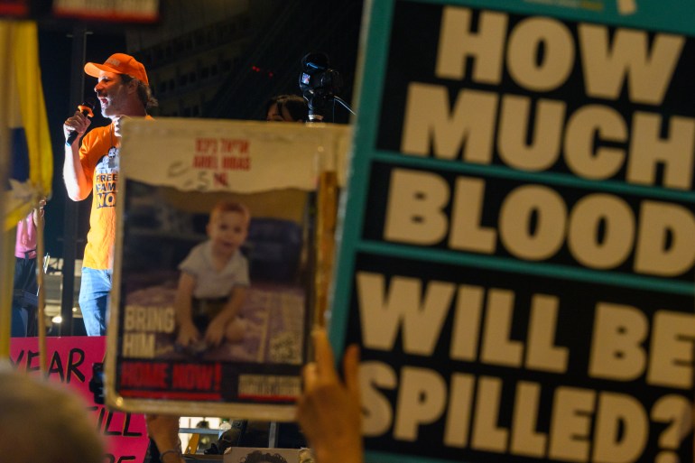 خرج آلاف الإسرائيليين مرة أخرى إلى الشوارع للمطالبة بإطلاق سراح المحتجزين في قطاع غزة والتوصل لاتفاق لوقف إطلاق النار ينهي الحرب الممتدة منذ عام.