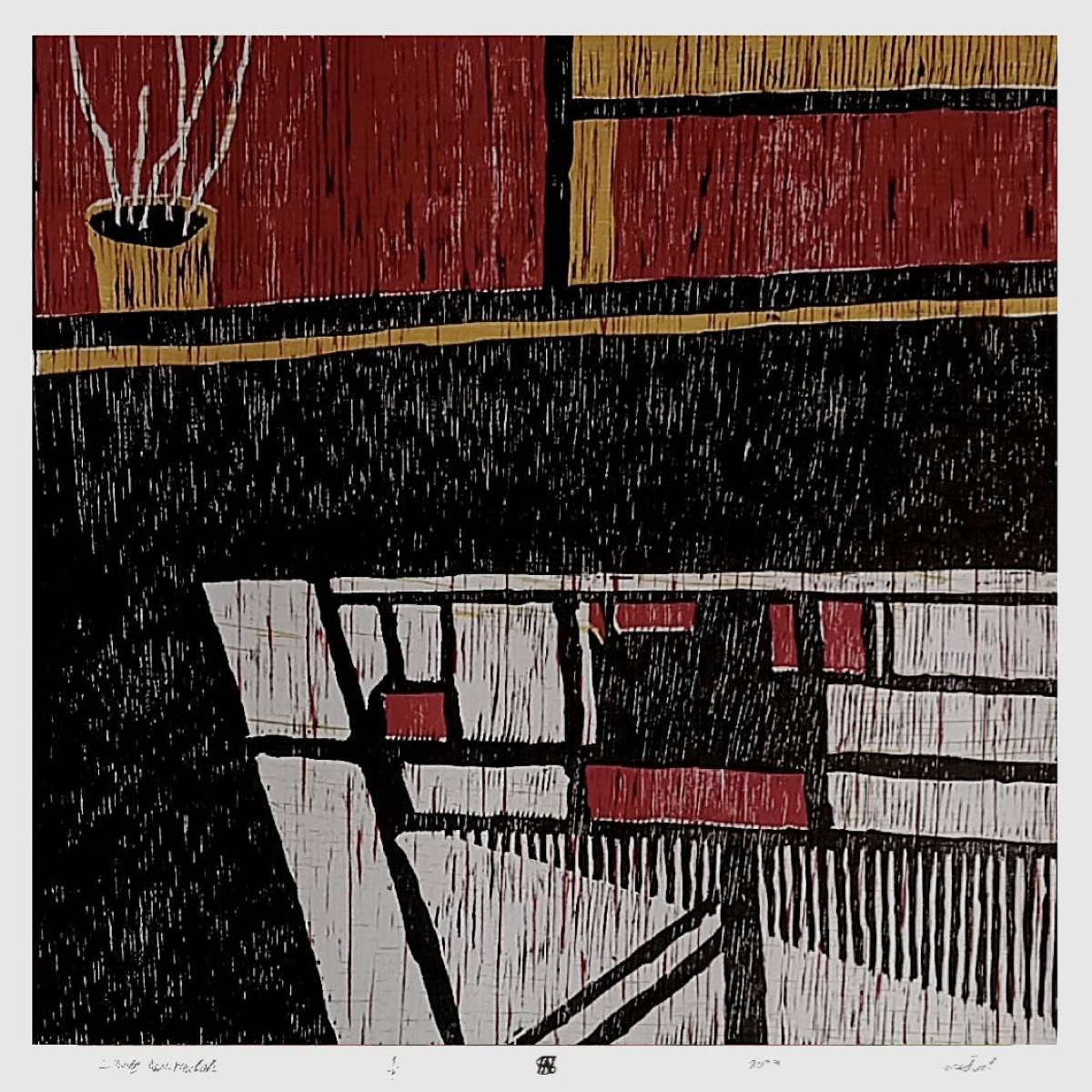 – هي تجربة فنية عبارة عن 14 عملا فنيا، يمثّل كل عمل مشهدًا انزوائيًا أو (انعزاليًا)، جراء ما خلّفته جائحة كوفيد – 19 من تأثيرات اجتماعية ونفسية عميقة في الوجدان والنفس والخيال وكذلك الفكر، حيث غيّرت كثيرًا من نظرتنا للوجود والموجودات، بل للحياة وجدواها ومعناها، فقد أجبرت الجائحة الفنانين على الانزواء في منازلهم ومراسمهم بعد التقاطهم لمشاهد الشوارع شبه الخالية من المارة والحياة، والمقاهي والمحال الخاوية من زبائنها، والأبنية المغلقة على ساكنيها المرتعبين من القاتل غير المرئي المتربص بهم، حيث أصبحت تلك المَشاهد المحملة بالمضامين النفسية القاتمة هي المسيطرة بصريًا ووجدانيًا، مع وجود الأمل في انفراجة قريبة. والتجربة الفنية منفذة بواسطة فن الحفر والطباعة البارزة الملونة من القالب الخشبي الطولي المقطع، وهي التقنية الفنية الأقرب إلى قلبي من بين جميع التقنيات الأخرى التي مارستها، وخصوصا أنها تتسم وتتميز بملمس يربط العمل الفني بالطبيعة بشكل فريد، وهو الملمس الطبيعي غير المصطنع لألياف الخشب. كما يسعدني أن أشير إلى أن لهذه الجائزة قيمة خاصة جدا بالنسبة لي، على المستوى المهني، لأنها في تخصصي الأكاديمي الدقيق، وهو تخصص (الطبعة الفنية).