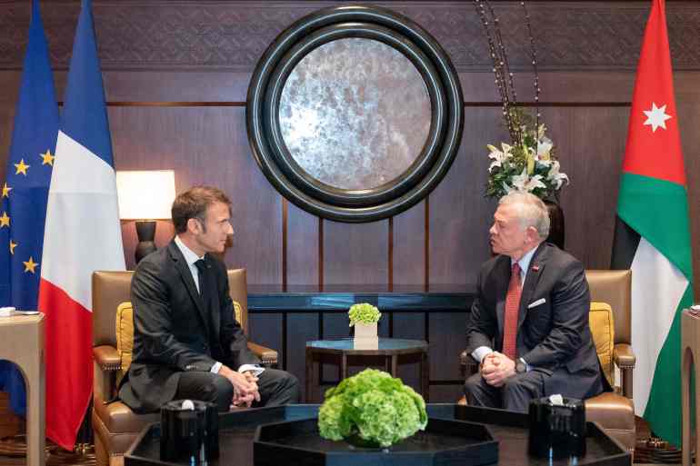 وقالت الرئاسة الفرنسية -في بيان- إن ماكرون والملك عبدالله الثاني أعربا عن القلق الكبير حيال تصاعد التوترات في المنطقة، وقد دعوا جميع الأطراف إلى “الخروج من منطق الانتقام، وممارسة أكبر قدر من ضبط النفس وتحمل أكبر قدر من المسؤولية، لضمان أمن الشعوب”.