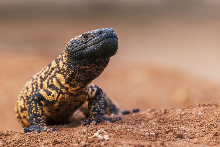 هنا يدخل وحش جيلا Gila monster، وهي أكبر سحلية في أمريكا الشمالية.