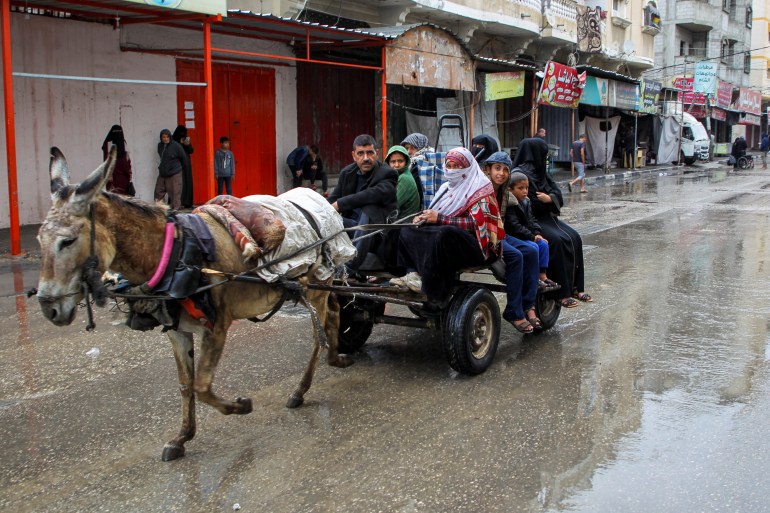 عائلة فلسطينية تنزح من الأطراف الشرقية لمدينة رفح (رويترز)