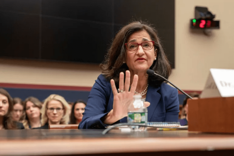 ويُذكرنا هذا بمشهد نعمت شفيق، وهي رئيسة جامعة كولومبيا ذات الأصول العربية، فقد قررت أن تتحدى الطلاب المُعتصمين احتجاجا على جرائم الإبادة في فلسطين.