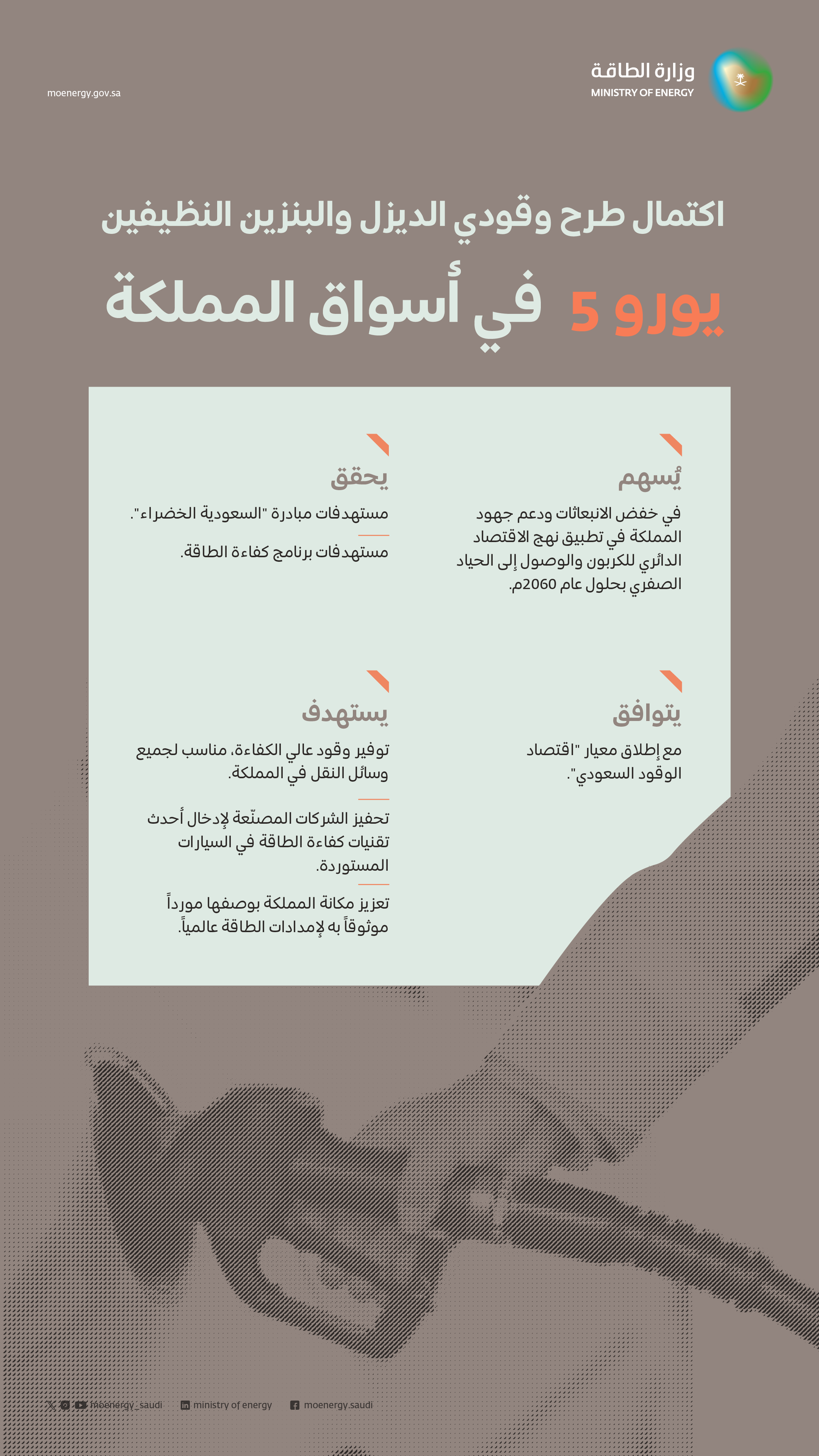 أعلنت وزارة الطاقة، اليوم الثلاثاء، اكتمال طرح وقودي الديزل والبنزين النظيفين “يورو 5” في جميع أسواق المملكة.