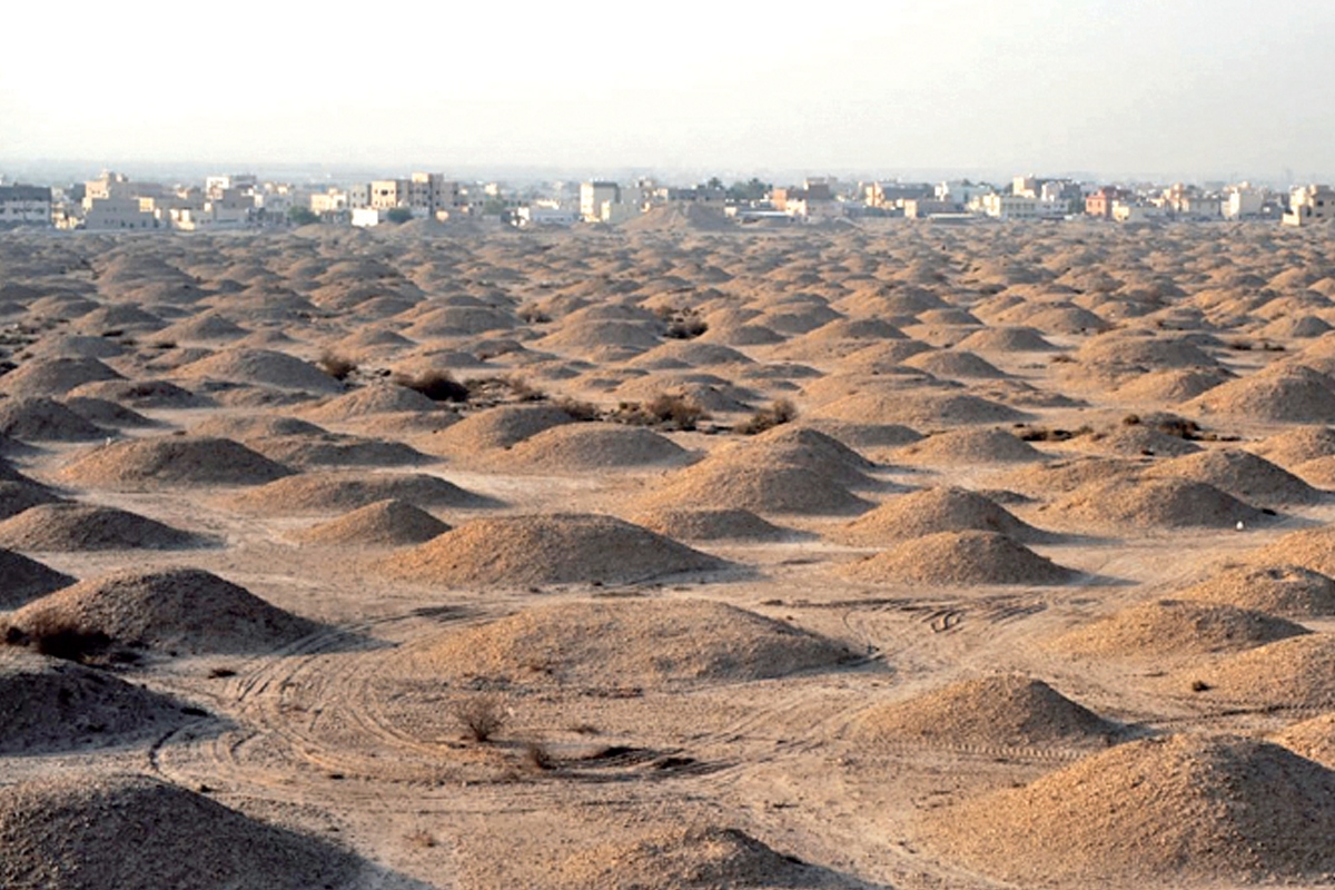 شاهدنا نماذج للمقابر والمدافن القديمة، اذ تضم البحرين أكبر مقبرة تاريخية اكتشفت في العالم حتى الآن، والتي تُدعَى مقبرة عالي وهي عبارة عن تلال تتكون من 21 جزءاً منتشرة على امتداد يصل إلى 20 كيلومتراً، وتضم تلال مدينة حمد، وتلال مدافن الجنبية، وتلال مدافن عالي الشرقي، وتلال مدافن عالي الغربي، ويصل عددها إلى 11.774 تلة، كما توجد بينها تلال ملكية.