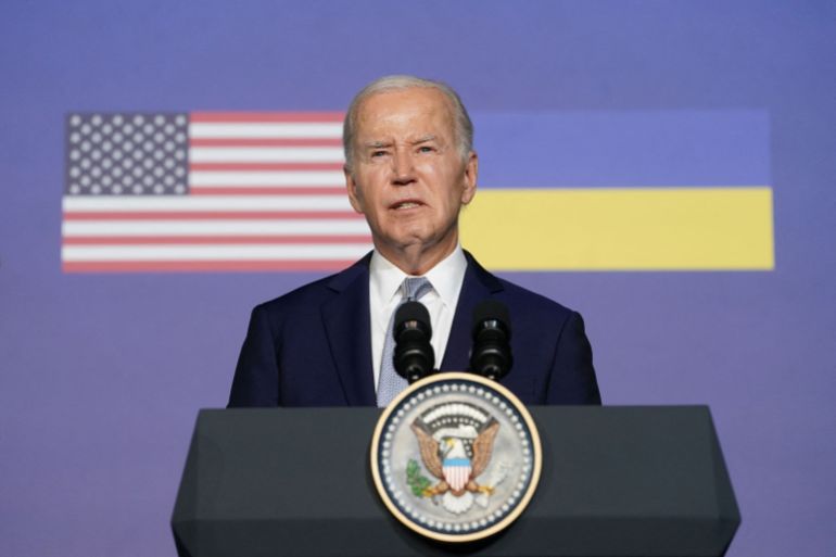 وأكد بايدن أن دول مجموعة السبع وافقت على دعم أوكرانيا بـ50 مليار يورو (54 مليار دولار) مصدرها الأصول الروسية المجمدة، واعتبر هذه الخطوة تذكيرا للرئيس الروسي فلاديمير بوتين بأن المجموعة لن تتراجع وستقف مع أوكرانيا ضد ما وصفه بالعدوان غير القانوني لبوتين.