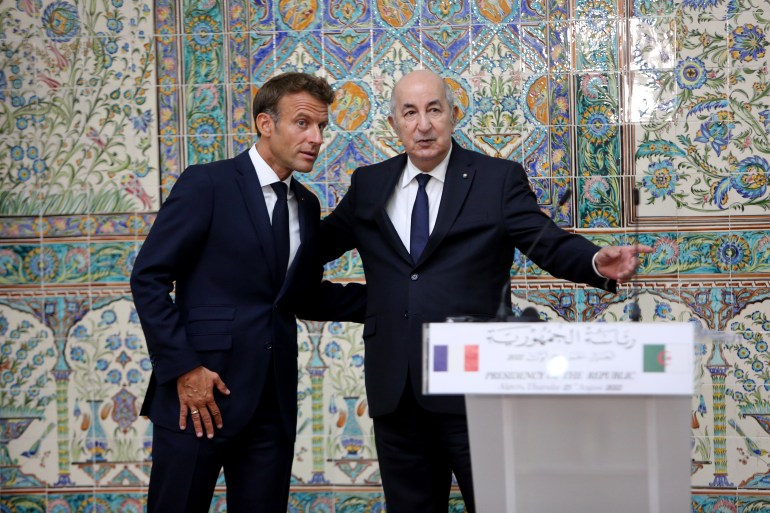تبون (يمين) مع ماكرون في قصر المرادية بالجزائر في أغسطس/آب 2022 (الأناضول)