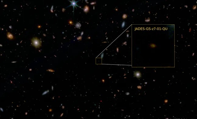 تعتبر مجرة JADES-GS-z7-01-QU المكتشفة حديثًا تبرز بتوقفها عن التكوين النجمي في وقت مبكر جدًا بالمقارنة، وتم اكتشاف المجرة باستخدام تلسكوب جيمس ويب الفضائي، الذي يوفر رؤية فريدة بالأشعة تحت الحمراء تسمح بالتحديق خلف الحجاب الدخاني من الغبار الكوني، وتميزت المجرة بأنها أخف عدة مرات من المجرات الأخرى المشابهة التي تم اكتشافها مسبقًا في الكون المبكر.