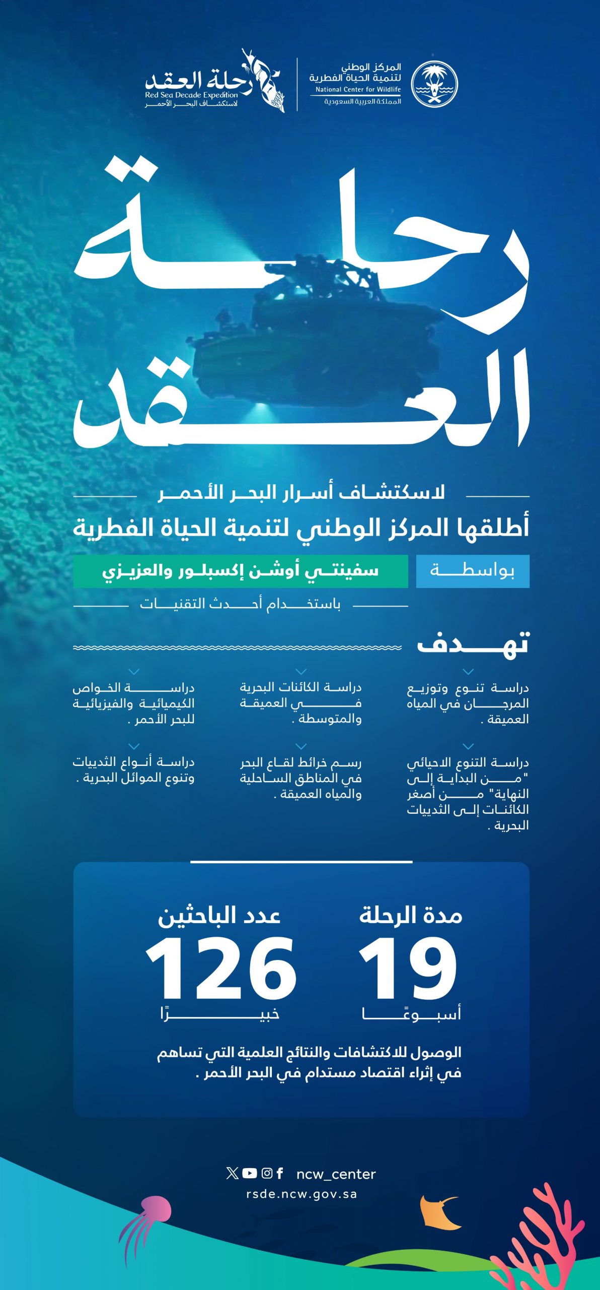 كان المركز الوطني لتنمية الحياة الفطرية أطلق الرحلة بواسطة سفينتي أوشن إكسبلور والعزيزي، المزودتان بأحدث التقنيات.