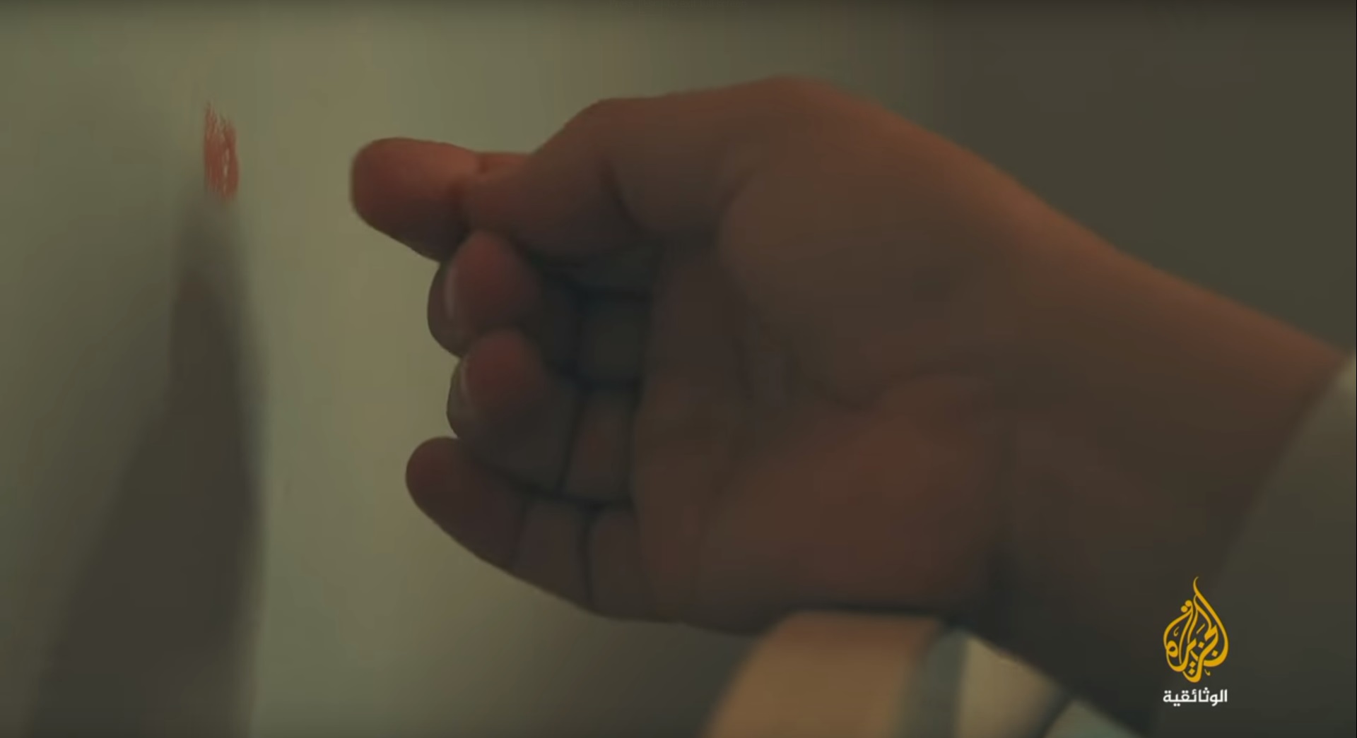 يظهر إبراهيم طراف في غرفة التحقيق مرتديا بيجامة يبدو عليه الارتباك مخفيا يديه في جيبه، وجد الشرطي علي معاد آثارا لجروح على يدي طراف، وعند سؤاله عن أسباب ذلك لم تقتنع الشرطة بما قدمه من تبريرات.