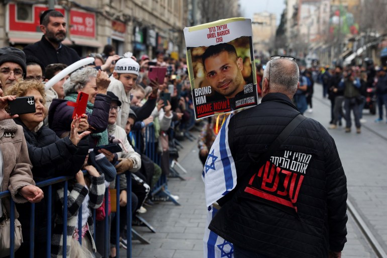 في الجانب الآخر، تظاهر إسرائيليون في القدس المحتلة احتجاجا على احتفال بلدية المدينة بعيد المساخر اليهودي قبل التوصل لحل بشأن قضية المحتجزين في غزة.