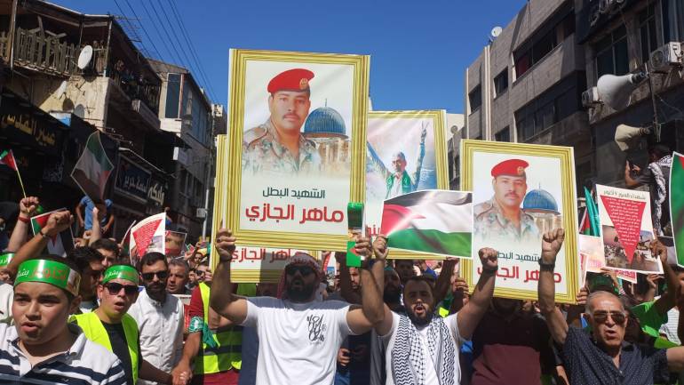 كما طالب المشاركون بإغلاق سفارة تل أبيب لدى الأردن وإسقاط “اتفاقية السلام” مع إسرائيل الموقعة عام 1994.