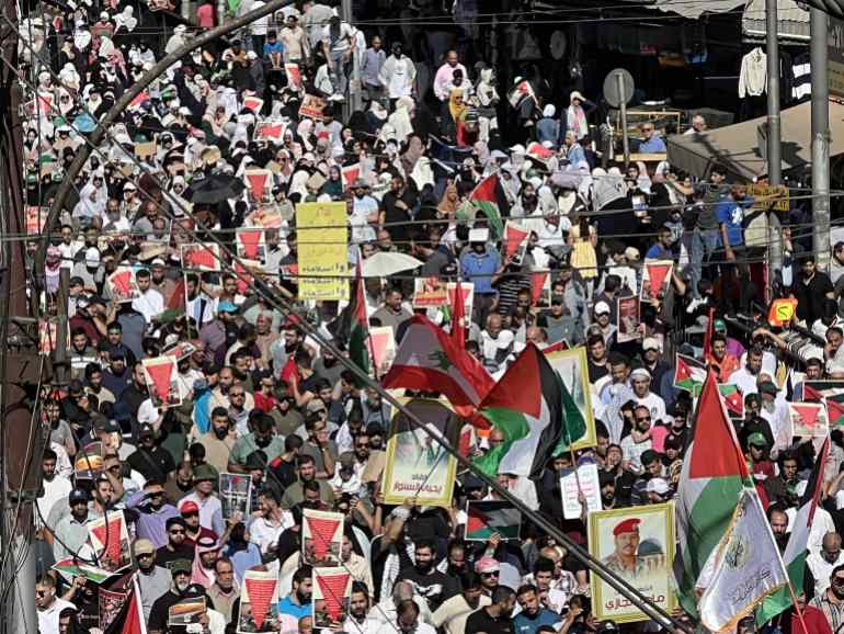 شارك أكثر من ألفي أردني، اليوم الجمعة، بمسيرة وسط العاصمة عمان، دعما لقطاع غزة ولبنان، في ظل تواصل الإبادة الجماعية والعدوان عليهما منذ نحو عام.