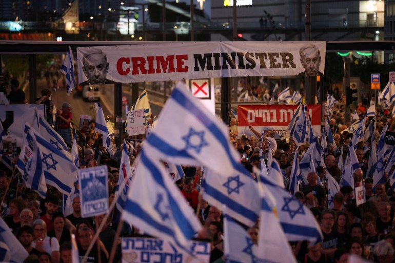 إسرائيل شهدت خلال الأشهر الأخيرة مظاهرات حاشدة تطالب نتنياهو بإنهاء الحرب على غزة ورحيل حكومته (رويترز)