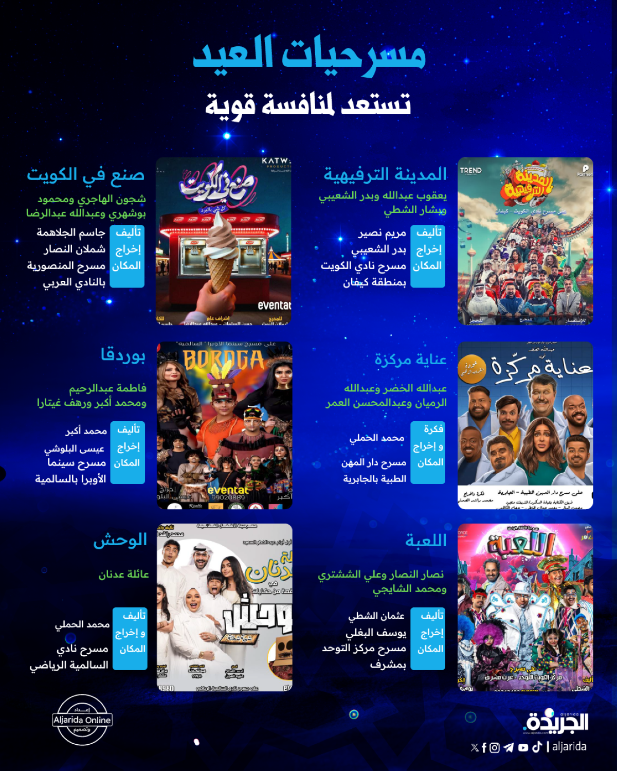 يستعد صُناع المسرح لموسم مسرحي هو الأكبر من نوعه في الكويت، حيث يشهد منافسة قوية بين عدد كبير من المسرحيات الكوميدية والاستعراضية، بمشاركة أكبر وأهم نجوم الدراما والمسرح الكويتي والخليجي.