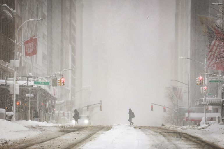 العواصف الثلجية التي ضربت مدينة نيويورك في فبراير/شباط أعاقت الحياة في كثير من شوارع المدينة (رويترز)