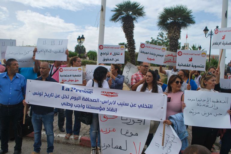 سياسيون وصحفيون ونقابات يقولون إن حرية الصحافة في تونس تواجه تهديدا خطيرا (الجزيرة)