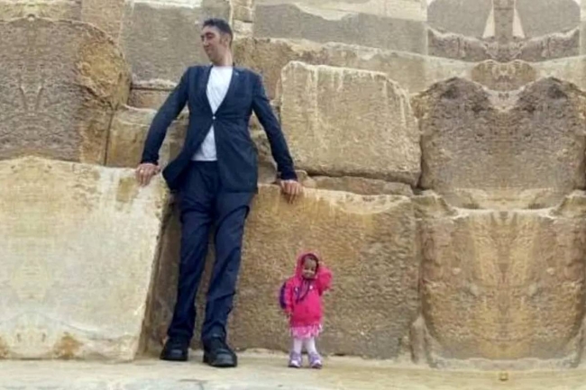بعدما التقيا في القاهرة عام 2018 وزارا أهرام الجيزة، اجتمع أطول رجل وأقصر امرأة في العالم مجدداً. فقد التقى التركي سلطان كوسين، (251 سم)، وجيوتي
