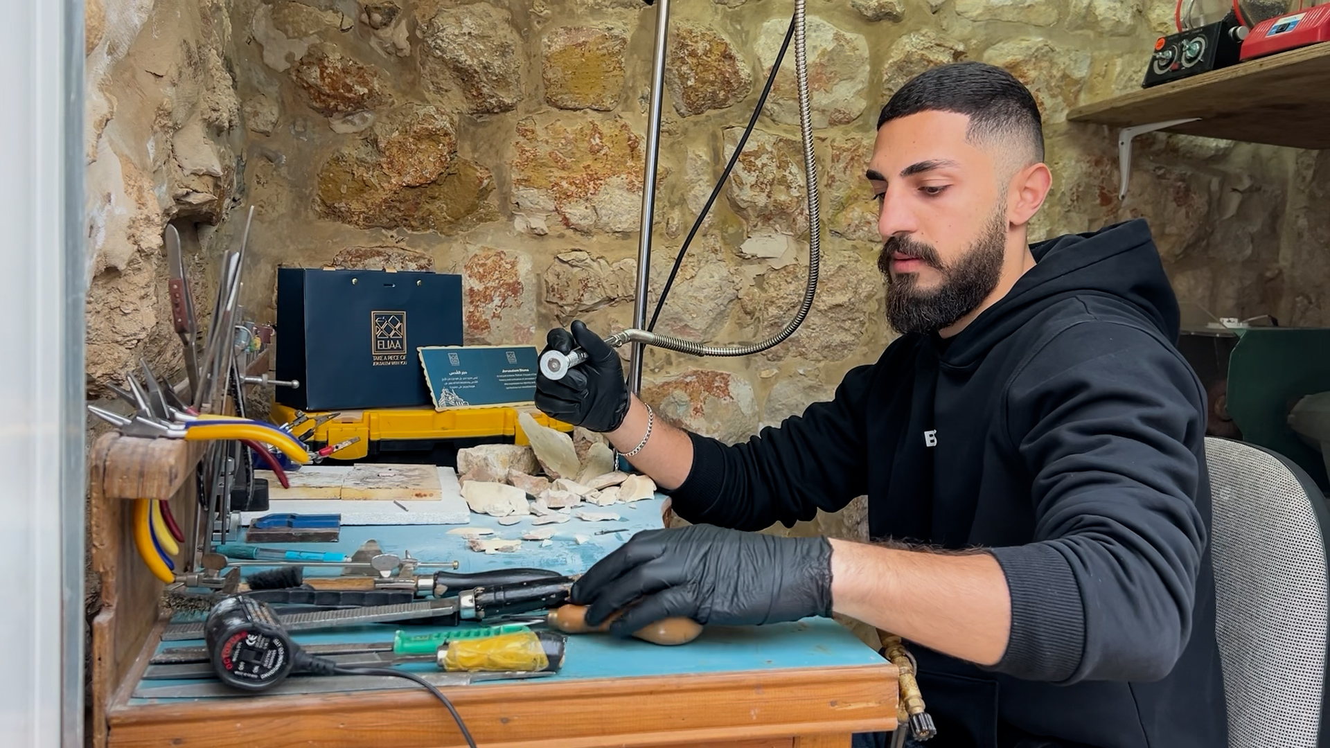 منذ سنوات تولدت لدى الشاب المقدسي إبراهيم الحج خليل، فكرة تحويل الحجارة العتيقة المتساقطة من مباني القدس المحتلة إلى حُلي، مستعينا بمهارته في النحت التي