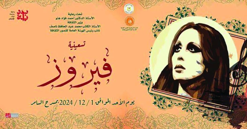 في «أمسية فنية احتفالية»، تُنظم هيئة قصور الثقافة المصرية، التابعة لوزارة الثقافة المصرية، احتفالية، مساء غد، لمناسبة عيد ميلاد الفنانة اللبنانية السيدة فيروز، بعنوان «تسعينية