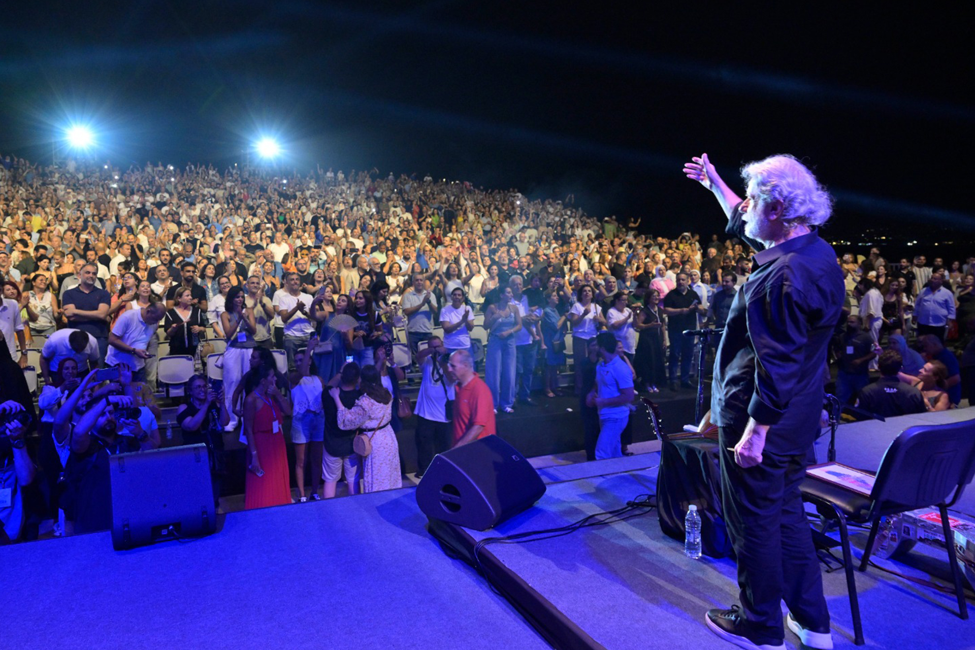 تخلّى الموسيقي اللبناني مارسيل خليفة في الحفلة التي أحياها مساء أمس السبت في مدينة صيدا الجنوبية عن الوشاح الأزرق الذي كان يطل به خلال السنوات