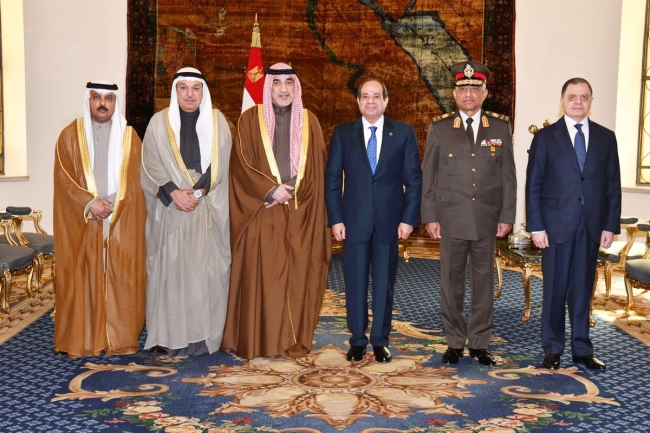 استقبل الرئيس المصري عبد الفتاح السيسي، اليوم الأحد، النائب الأول لرئيس مجلس الوزراء وزير الدفاع والداخلية، الشيخ فهد اليوسف، وذلك بحضور القائد العام للقوات المسلحة