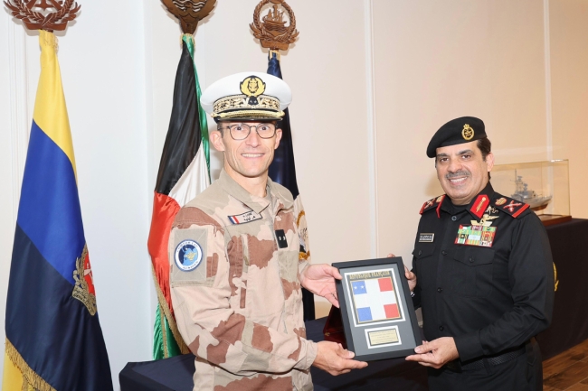 بحث مساعد آمر القوة البحرية اللواء الركن بحري سيف الهملان اليوم الأحد مع قائد المنطقة البحرية في المحيط الهندي للقوات الفرنسية العميد بحري هوغ لينيه