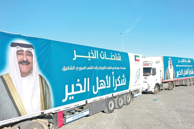 أعلنت جمعية الخير الإنسانية الكويتية تسيير 10 شاحنات إغاثية منطلقة من تركيا، وصولاً إلى سورية، محمَّلة بما يزيد على 250 طناً من المواد الإغاثية والغذائية.