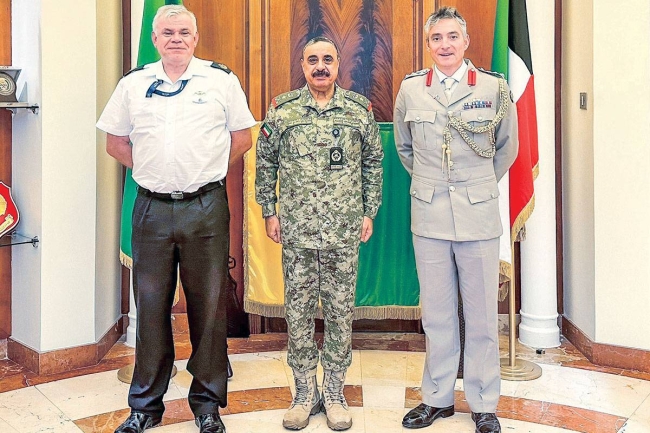 استقبل وكيل الحرس الوطني الفريق الركن هاشم الرفاعي، في مكتبه بالرئاسة العامة للحرس، الملحق العسكري البريطاني الجديد في السفارة البريطانية لدى دولة الكويت العقيد بروس