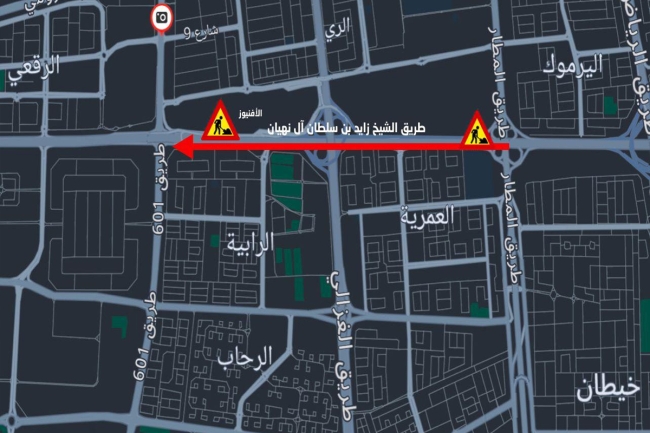 أعلنت وزارة الداخلية إغلاق مؤقت لحارتين مروريتين على طريق الشيخ زايد بن سلطان آل نهيان «الدائري الخامس» للقادم من منطقة السالمية باتجاه الجهراء بواقع خمس