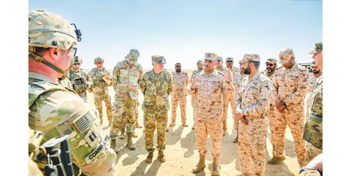 تفقد آمر القوة البرية العميد الركن حمد السويدي، وقائد القوات البرية المركزية للولايات المتحدة الأميركية الفريق فرانك باتريك الوحدات المشاركة في تمرين «ملاحظ الصحراء» للاطلاع