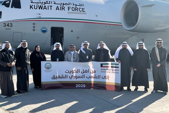أقلعت اليوم الأحد الطائرة الإغاثية الـ20 من الجسر الجوي الكويتي متجهة إلى مطار دمشق محملة بـ36 طناً من المواد الغذائية للفئات الأكثر احتياجاً ضمن حملة