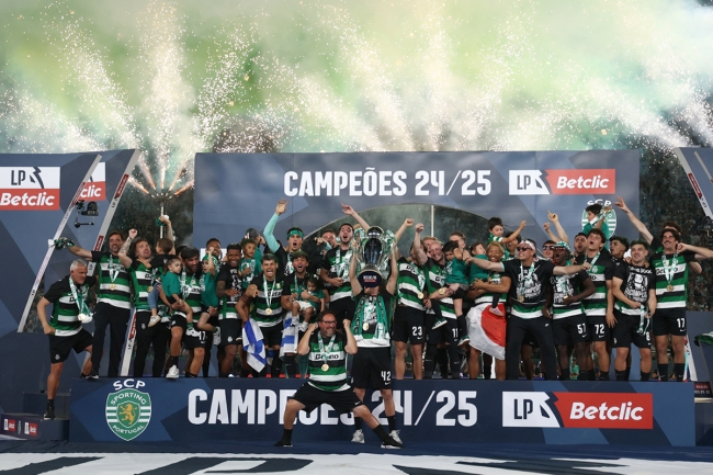 توّج سبورتينغ بلقب الدوري البرتغالي لكرة القدم للموسم الثاني توالياً، بعد فوزه السبت على غيمارايش 2-0 في المرحلة الأخيرة التي حسم فيها الصراع مع غريمه