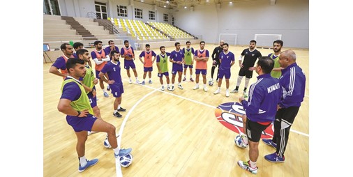 يواصل منتخبنا الوطني لكرة الصالات تدريباته على فترتين صباحية ومسائية في صالتي نادي الكويت ومركز شباب جليب الشيوخ، استعدادا لنهائيات كأس آسيا، والتي ستقام في