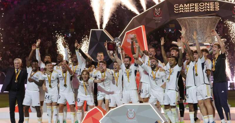 تُوّج نادي ريال مدريد بالسوبر الإسباني بعد اكتساحه برشلونة (4-1) على ملعب «الأول بارك» في العاصمة السعودية الرياض. وأنهى ريال مدريد الشوط الأول بثلاثة أهداف