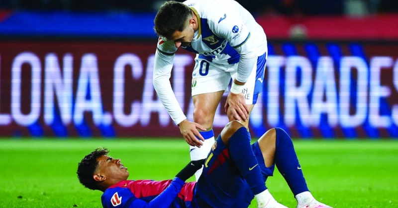 أعلن نادي برشلونة، متصدّر الدوري الإسباني لكرة القدم، أمس، غياب جناحه لامين يامال بين 3 و4 أسابيع عن الملاعب بسبب التواء في كاحله الأيمن تعرّض