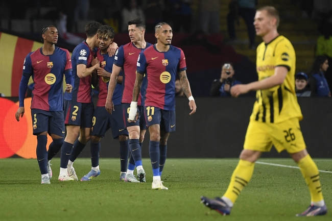 وضع برشلونة الإسباني قدماً في نصف نهائي دوري أبطال أوروبا لكرة القدم بعد فوزه الكبير على ضيفه بوروسيا دورتموند الألماني وصيف النسخة الماضية، برباعية نظيفة