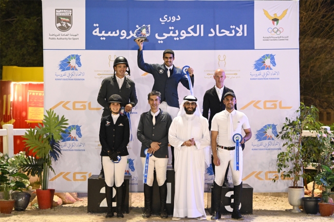 تُوج الفارس حمد الهاجري بلقب الجولة الخامسة من الدوري الكويتي للفروسية، بفوزه بصدارة الشوط الرئيسي (الجائزة الكبرى) على ارتفاع 140 سم، بزمن 31.48 ثانية، بعد