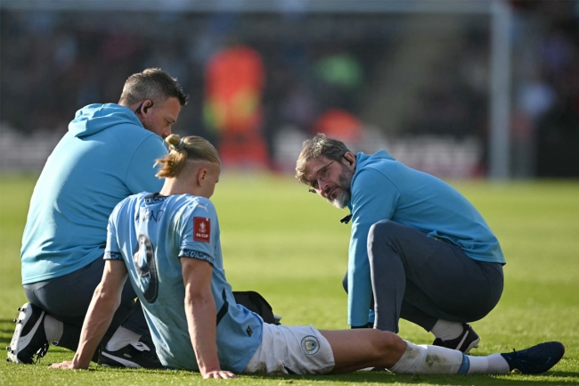 تعرض مانشستر سيتي لضربة كبيرة أمس بإصابة هدافه النرويجي إرلينغ هالاند في الكاحل، ومن المرجح أن يستمر غيابه فترة، تزامنا مع وصول الموسم الى فترته