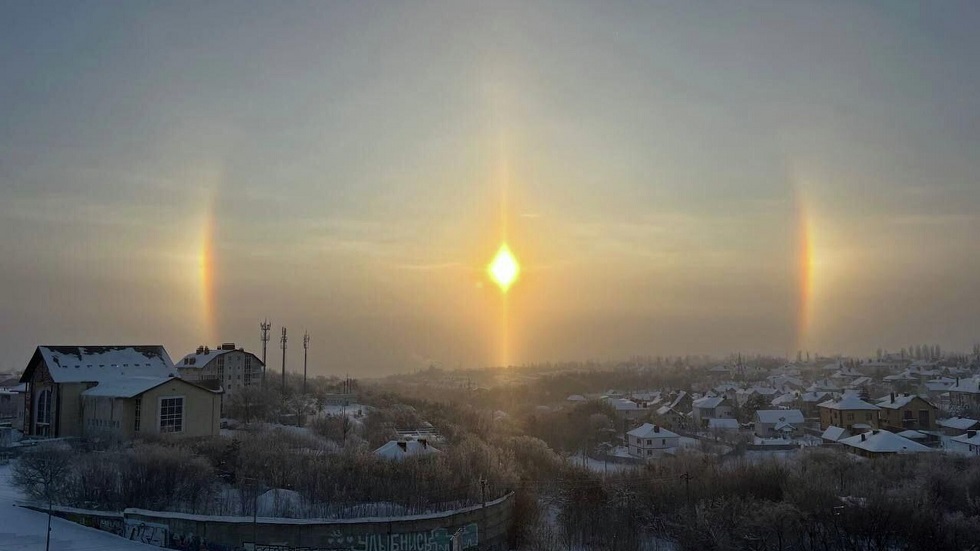 رصد سكان مدينة ساراتوف الروسية ظاهرة بصرية حول الشمس، تعرف بظاهرة الهالة الشمسية، في سماء المدينة، صباح يوم الأربعاء 28 يناير. ويوضح عالم الأرصاد الجوية