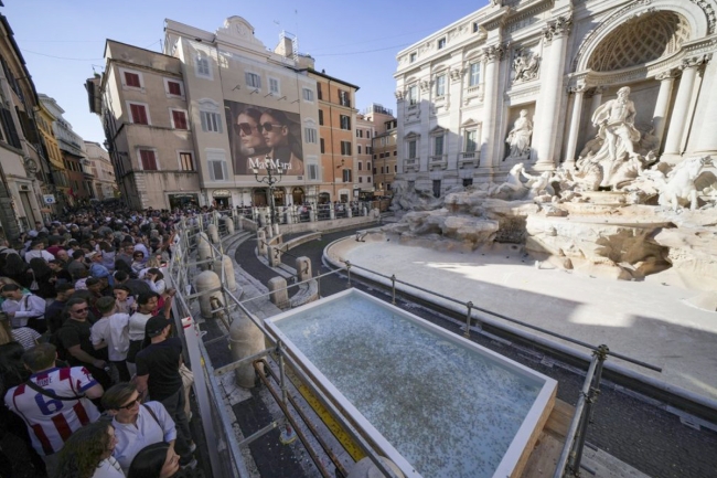 افتتحت بلدية العاصمة الإيطالية جسر مشاة مؤقتاً فوق نافورة تريفي للسماح للسياح بزيارة الموقع الشهير أثناء خضوعه لعملية تنظيف. وصمم الممشى، الموجود فوق الحوض، ليتيح