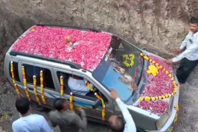 شهدت ولاية غوجرات الهندية حدثاً فريداً، حيث أقام رجل جنازة رمزية لأول سيارة اشتراها في حياته، وشارك المئات من الأهالي في حفل تأبين السيارة «ماروتي