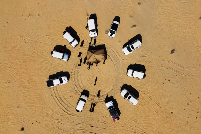وسط الكثبان الرملية، نصب شبّان خيامهم قبل أن يتجمعوا حول النيران للتدفئة في عمق صحراء جنوب العراق التي باتت تجذب مزيداً من العراقيين الملتجئين الى