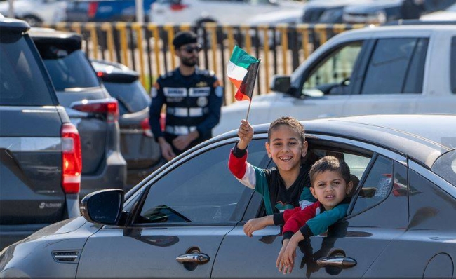 بأجواء من البهجة والسعادة تحول شارع الخليج العربي اليوم الاثنين إلى لوحة فنية متزينا بأعلام الكويت احتفالا بالعيد الوطني ال63 ويوم التحرير الـ33. وشهد شارع