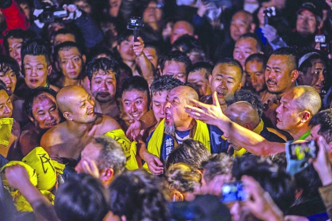 يتصاعد بخار أبيض كثيف، بينما يطهّر مئات الرجال بأجسام شبه عارية أنفسهم بمياه باردة، ويتنافسون على تعويذات، في طقوس يعود تاريخها إلى قرون بشمال اليابان،