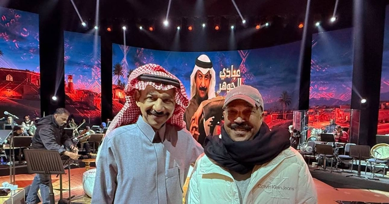 فاجأ سفير الأغنية الخليجية الفنان عبدالله الرويشد الجميع بحضوره البروفة الفنية للفنان عبادي الجوهر، في مركز جابر الأحمد الثقافي. المصدر: الراي