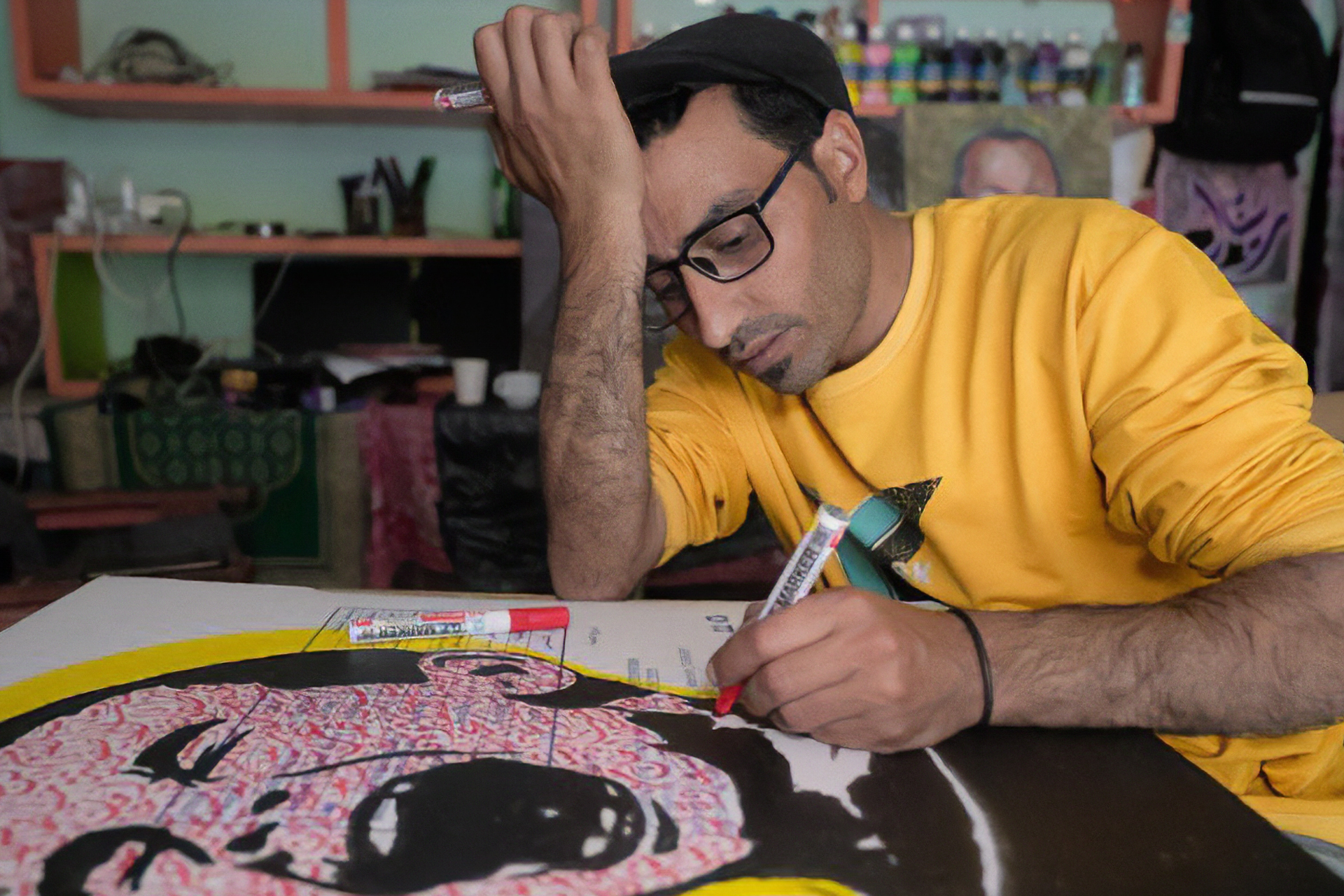 أحمد مهنا.. فنان يرسم الجوع والأمل على صناديق المساعدات بغزة