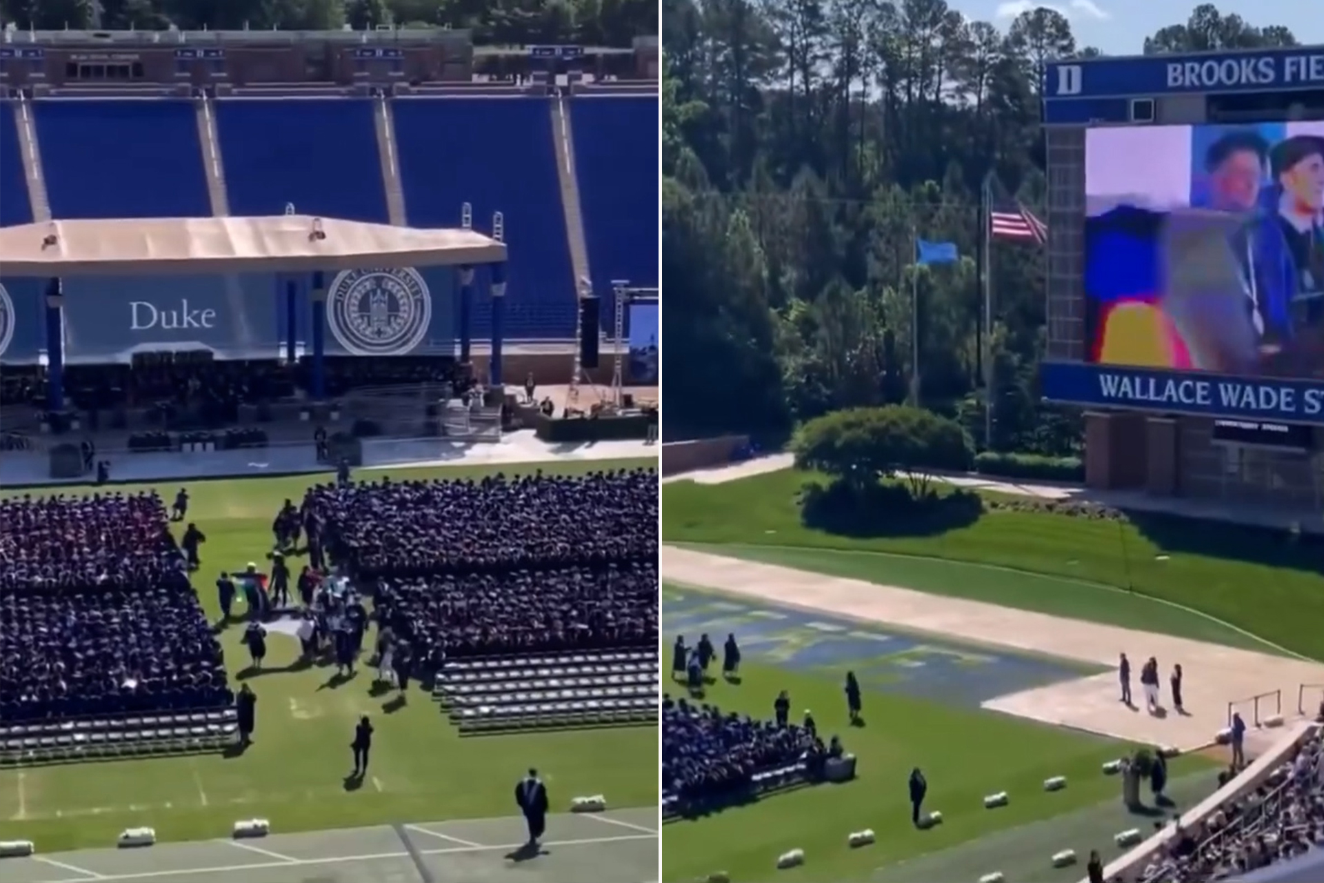 أظهر مقطع فيديو لحظة انسحاب عشرات الطلاب من حفل التخرج بجامعة ديوك في ولاية كارولينا الشمالية بأميركا، احتجاجًا على إلقاء الممثل الكوميدي جيري ساينفيلد (70