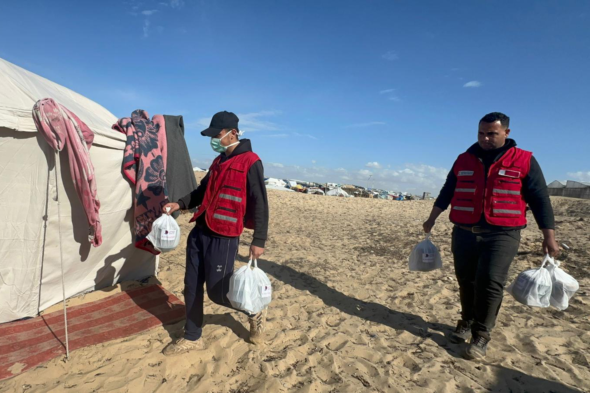 بدأ الهلال الأحمر القطري بالاشتراك مع مؤسسة التعليم فوق الجميع، تنفيذ مشروع إغاثي يهدف إلى توزيع الوجبات الغذائية الجاهزة على نحو 100 ألف من المتأثرين