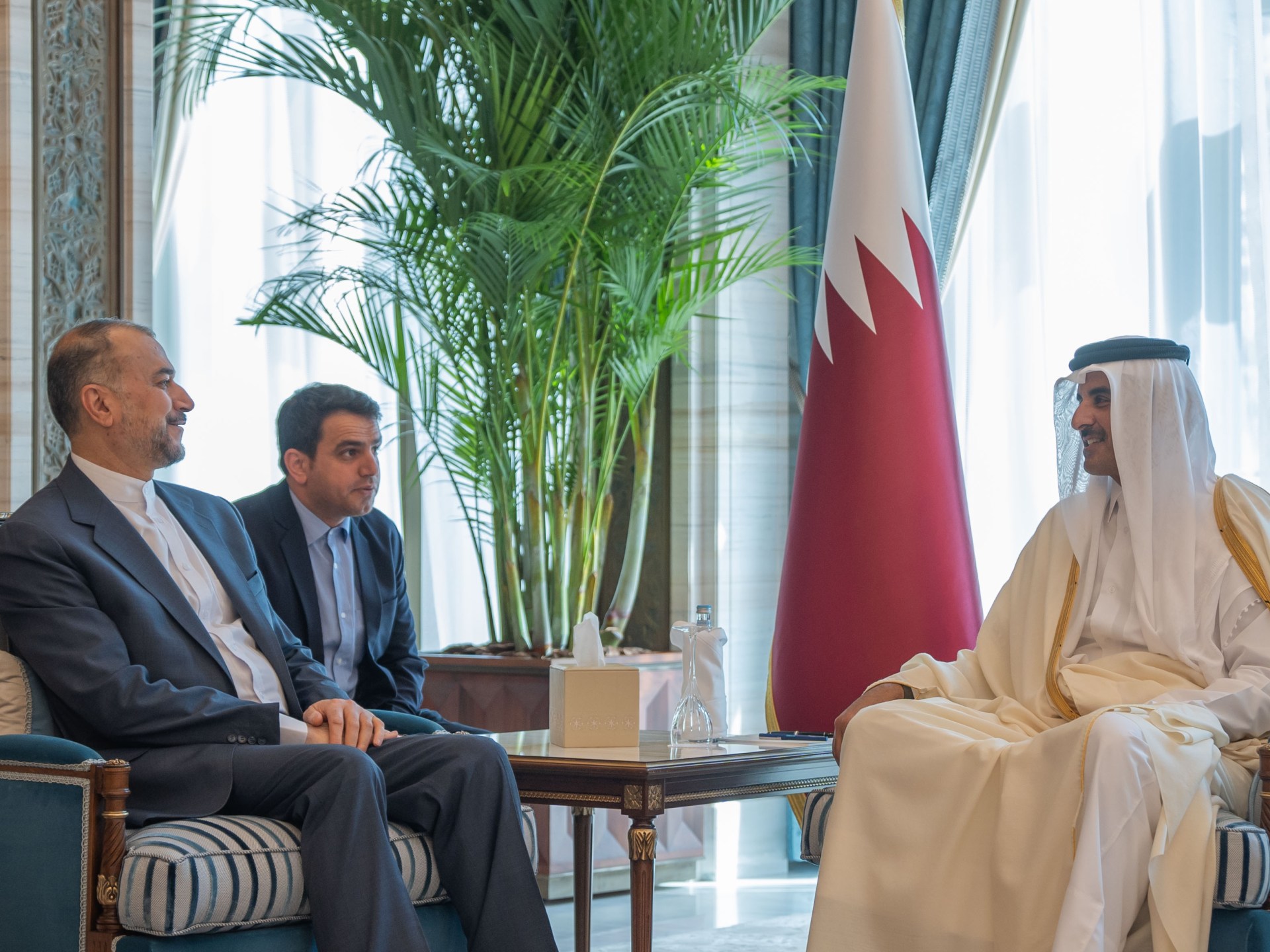 بحث أمير دولة قطر الشيخ تميم بن حمد آل ثاني مع وزير الخارجية الإيراني حسين أمير عبد اللهيان خلال لقائهما في الدوحة اليوم الثلاثاء تطورات